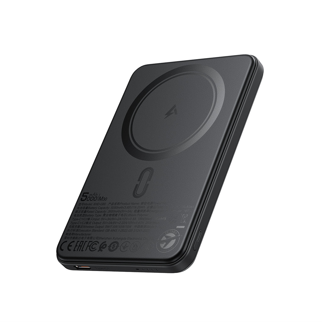 Snap on and power up without the bulk. The M30 Magnetic Wireless Power Bank is engineered for the ultimate minimalist. At a remarkably slim 10mm and weighing just 116g, this 5000mAh portable charger attaches seamlessly to the back of your phone, acting as an ultra-compact extension of your device. Featuring a strong magnetic grip, versatile wireless and wired charging options, and a clever detachable built-in cable, the M30 ensures you stay powered up without the hassle of tangled cords or heavy pockets.