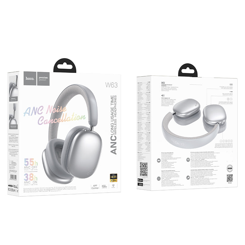 W63 Over-Ear Wireless ANC Headphones – 55-Hour Playtime & Bluetooth 5.4 with App Control
