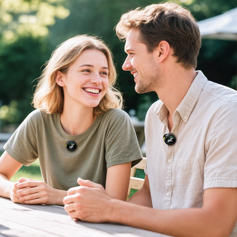 Dual-Channel Recording: Includes two microphone transmitters, allowing you to record two speakers simultaneously—perfect for interviews, podcasts, or co-hosted TikToks.