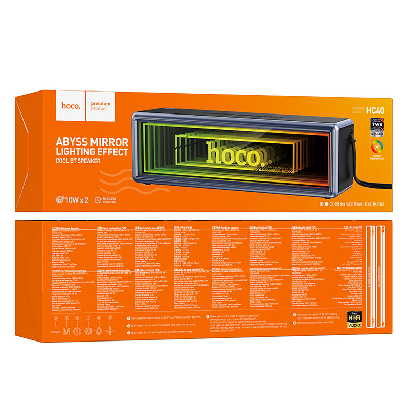 Unleash a full-spectrum audio-visual experience. The HC40 speaker combines a massive 20W of stereo power with a stunning, customizable matrix LED light display, turning any space into an instant party. This is the ultimate speaker for those who want to see their music, not just hear it.